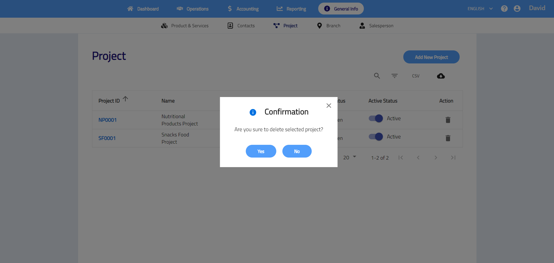 - Go to General Info > Project > Add New Project.