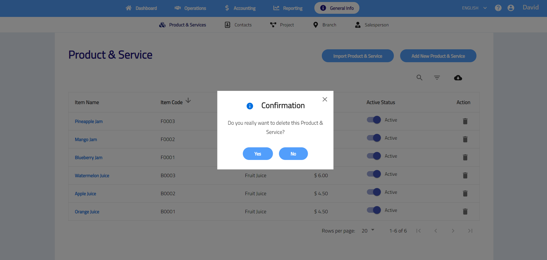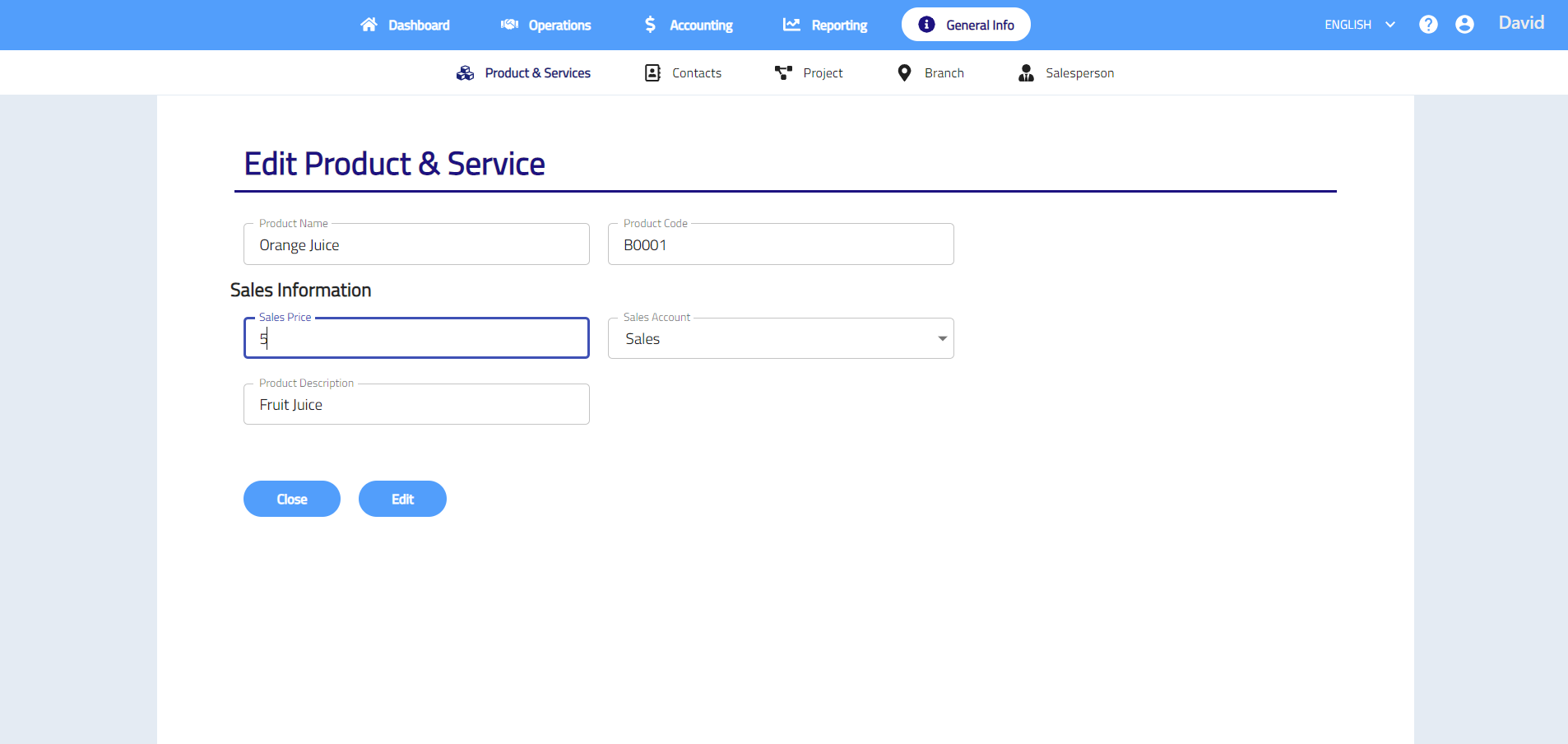 - Go to General Info > Product & Services > Add New Product & Service.