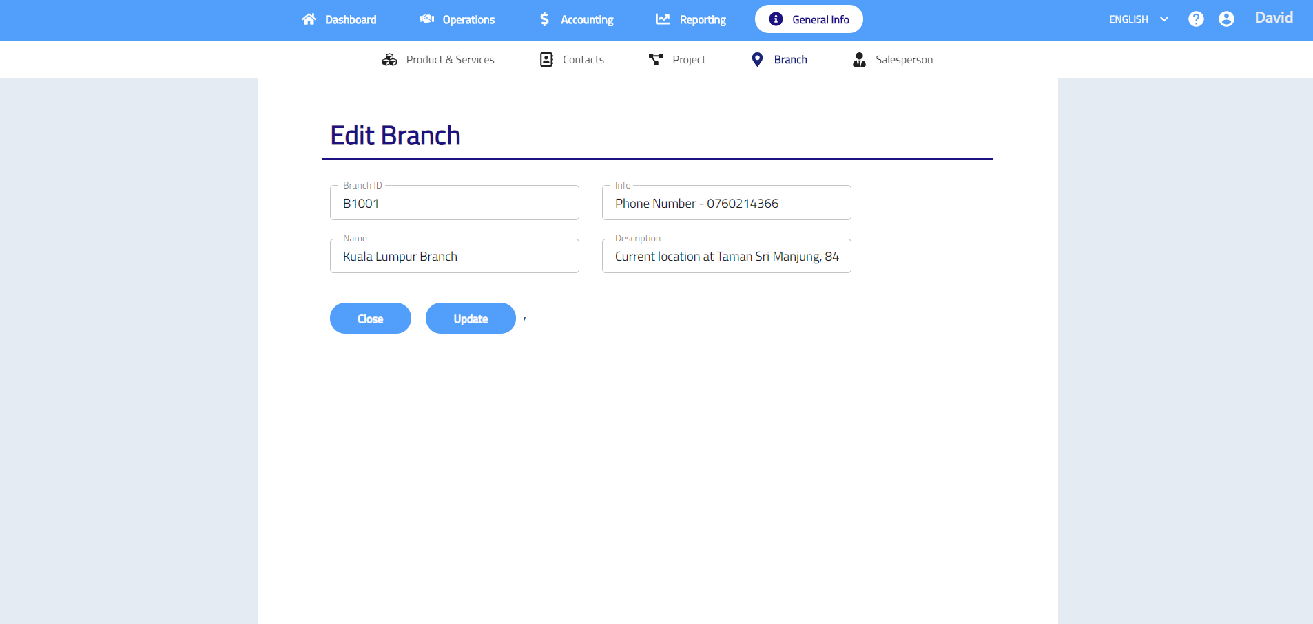 - Enter branch ID, name, info and description.