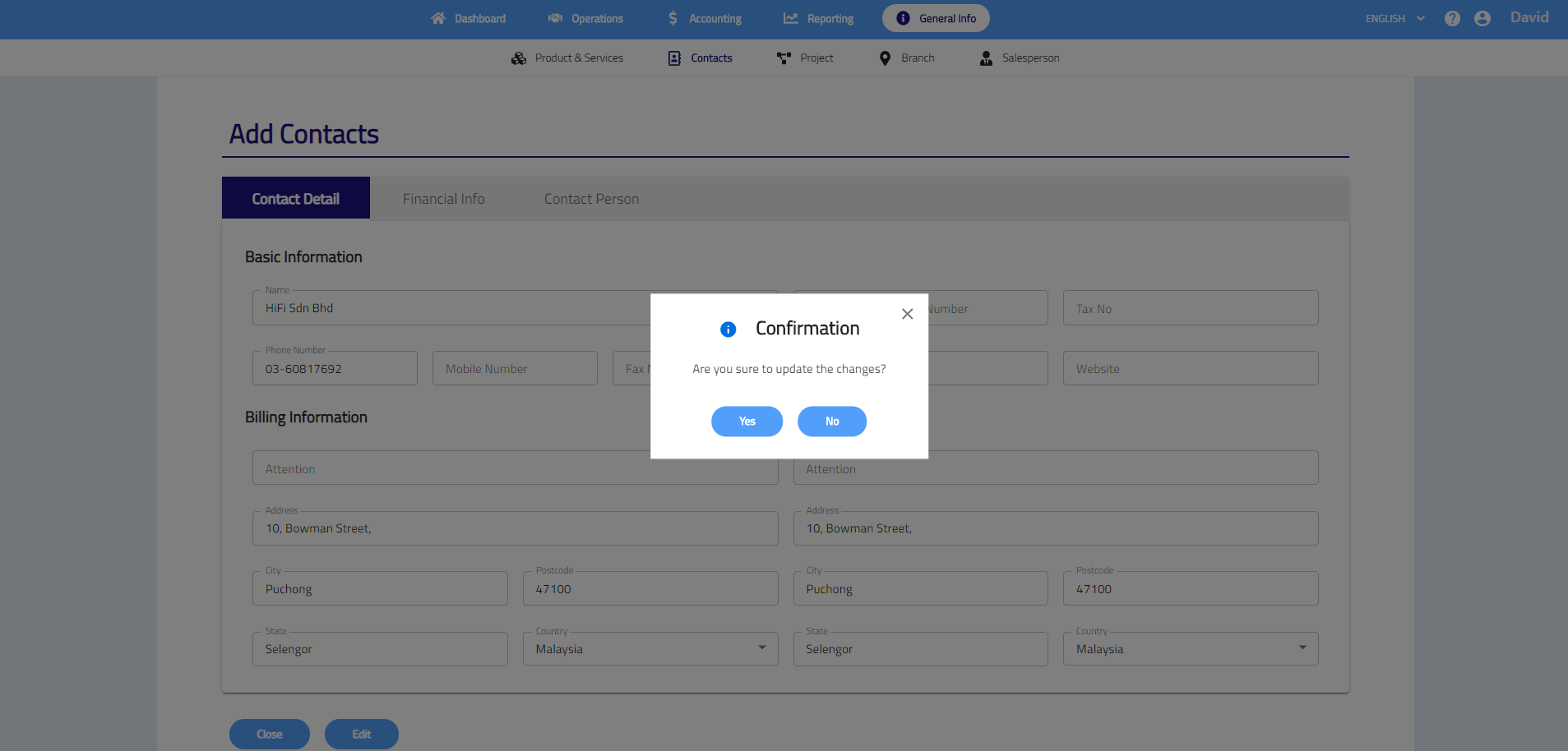 - Click Update button and click Yes to save edit.