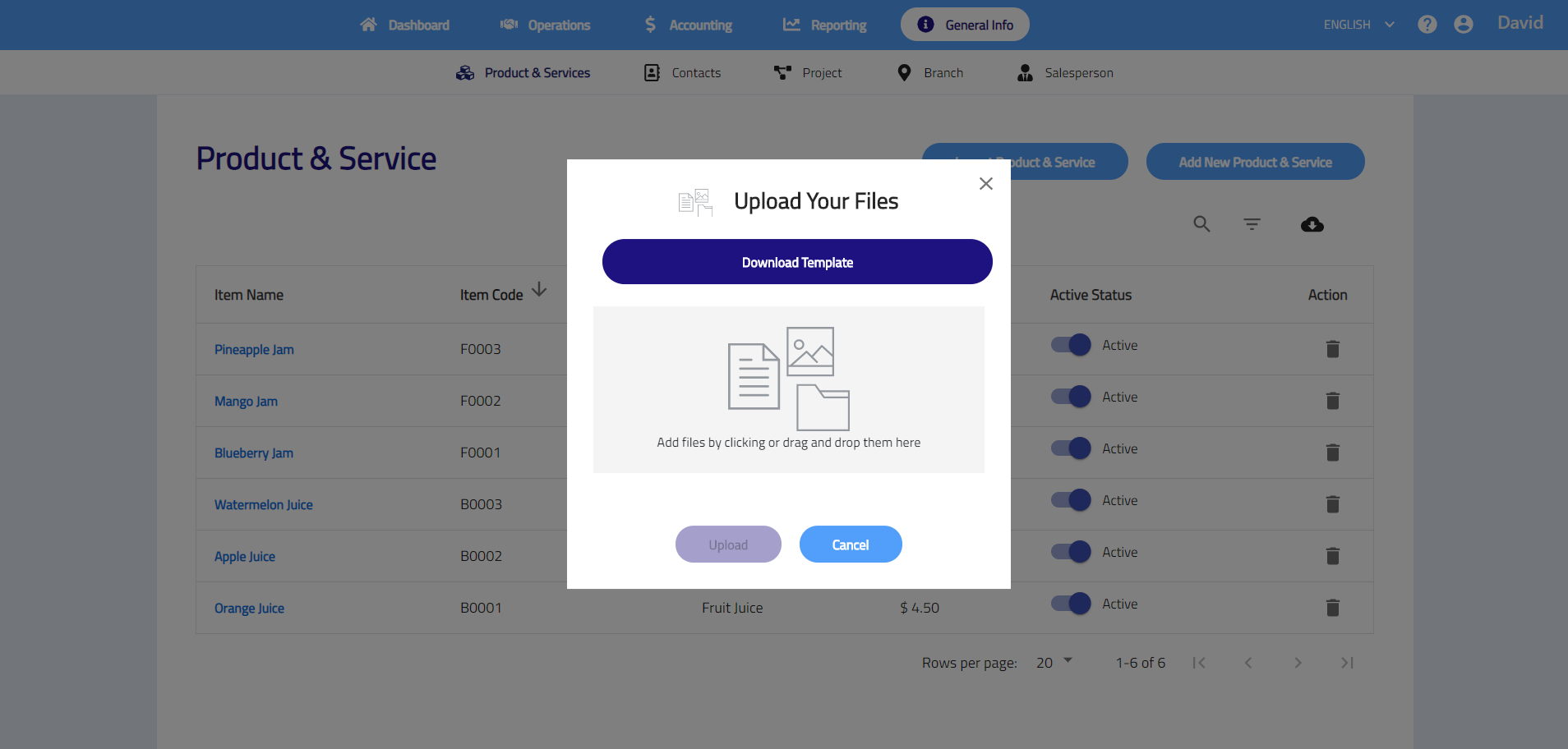 Product and services shows list of product and/or services that your business sells. You may add and manage the product and services here. All items will be used when creating invoices, purchase orders and other related transactions.